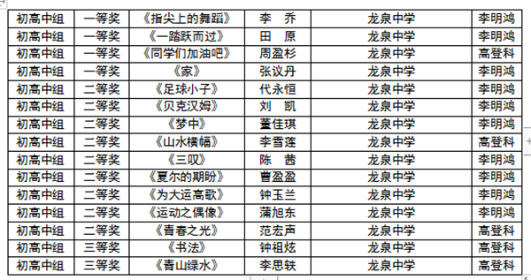 成都市龙泉中学在本次活动中积极参加,展示了学校美术教育的丰硕成果。在活动中,学校获得“优秀组织奖”,李明鸿、高登科两位老师的画作评为一等奖,所指导的学生获得4个一等奖,9个二等奖,2个三等奖。龙泉中学体育馆也将作为大运会的篮球训练场馆,学校体育馆目前已经进入最后的外围绿化及收工阶段,助力大运会的顺利开展。