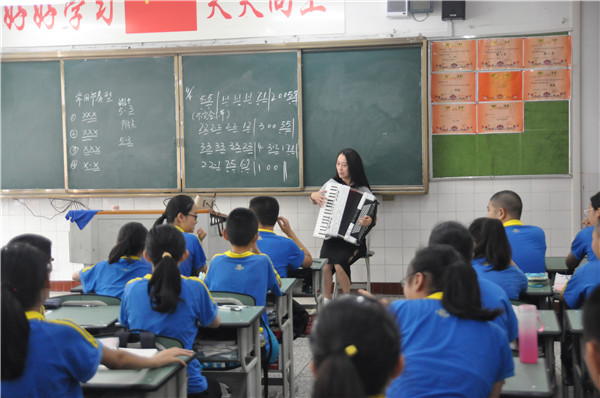 梁华老师执教的《学习附点音符节奏练习及常用节奏性练习与音乐的配合》向来访教师展示其精心设计的教学流程,整堂音乐课气氛热烈,学生在课堂上充分感受了音符节奏的魅力。