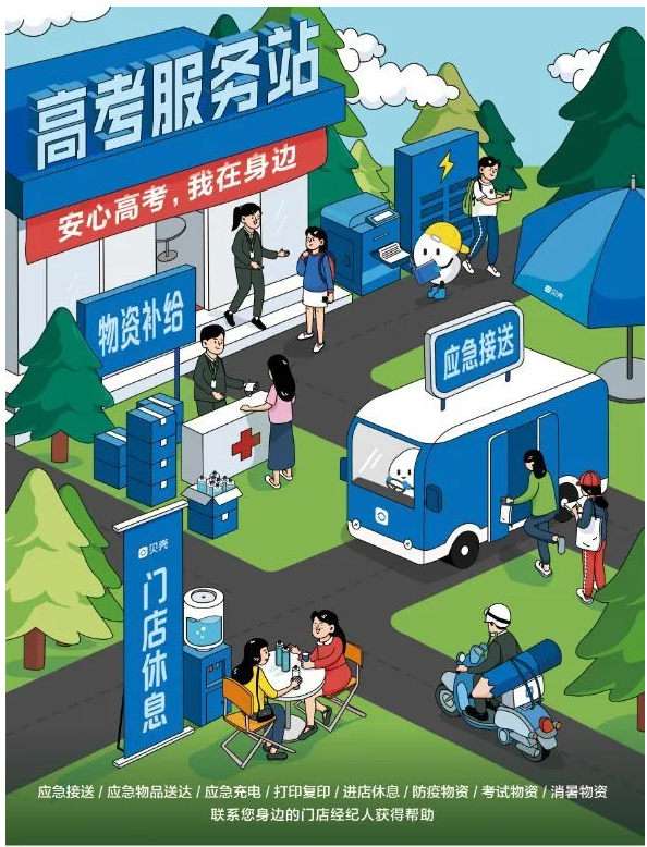 休息区域:1500多家合作门店的空调办公区,供考生及家长进行休息,防暑降温;
