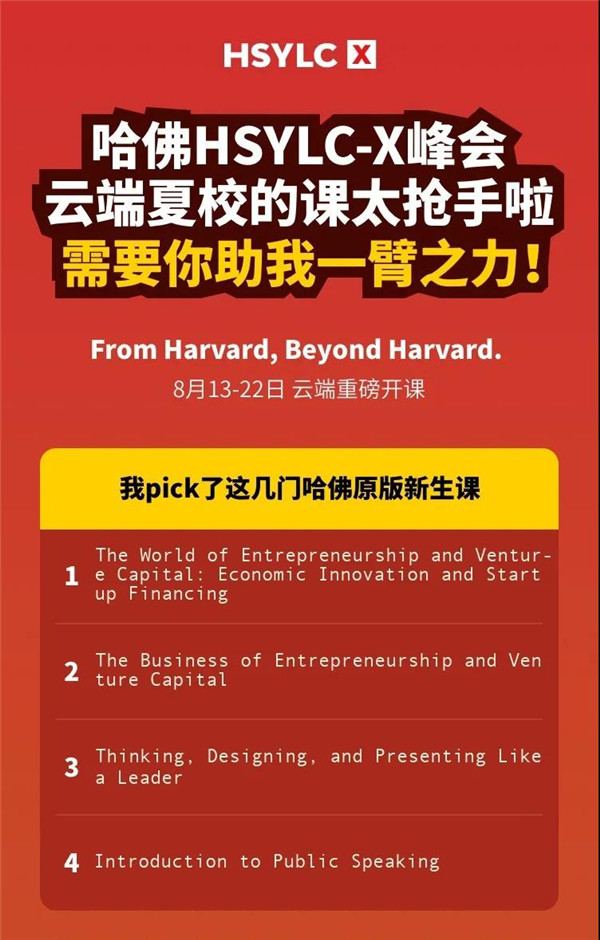 2020年8月,除了哈佛明星授课以外,HSYLC将首次携手耶鲁、斯坦福、牛津、剑桥等全球顶尖名校导师。