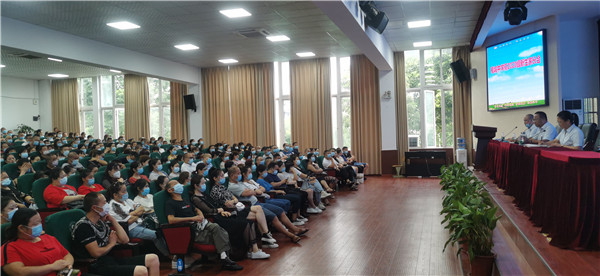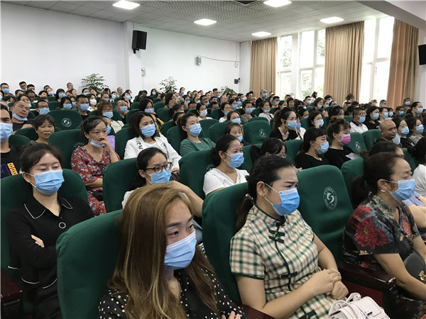 8月15日-16日,崇州市蜀城中学在做好疫情防控前提下,错峰错时分三批次在学校食堂和学术报告厅分别举行了高2020级新生大会及家长会。学校校长周玉林、高2020级管理团队全体成员、部分班主任和高2020级全体新生及家长参加了会议,会议由高2020级年级主任邓伦江主持。