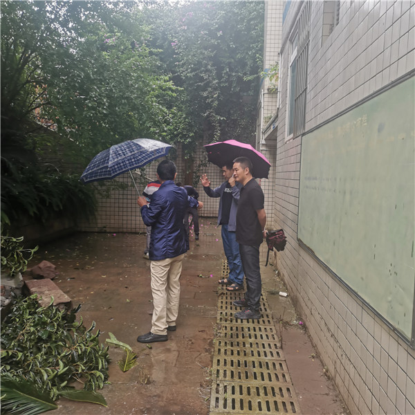 18日早上,雨小了,全体行政和施工人员对全校存在安全隐患的地方进行了现场调研,提出了最佳解决方案。