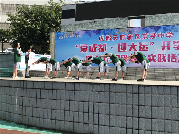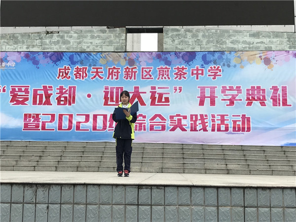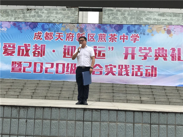 9月1日,成都天府新区煎茶中学全体师生齐聚运动场,举行“爱成都·迎大运”暨煎茶中学2020-2021学年度上期开学典礼。天府新区教体处、煎茶街道相关人员共同参与,并深入学校食堂等检查开学各项工作。