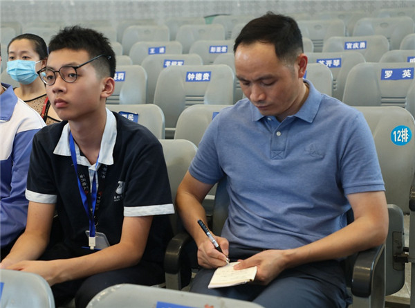 廖常竣主任以“走进中考”为主题,结合当前中考形势及要求,介绍了年级在教育教学上的管理措施。他从快速收心、精心思考、积极适应、沉着冷静四个方面对同学们提出建议与要求,让学生及家长们对中考有了更深入地了解,增添了动力与信心。