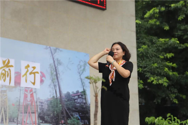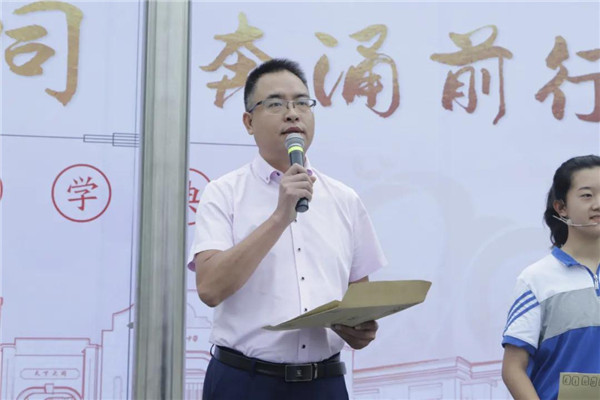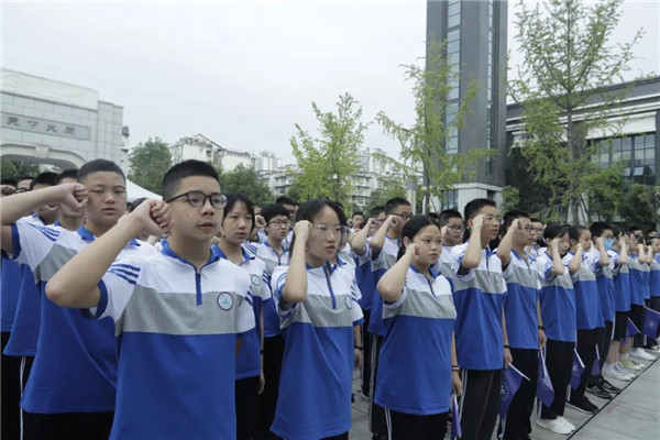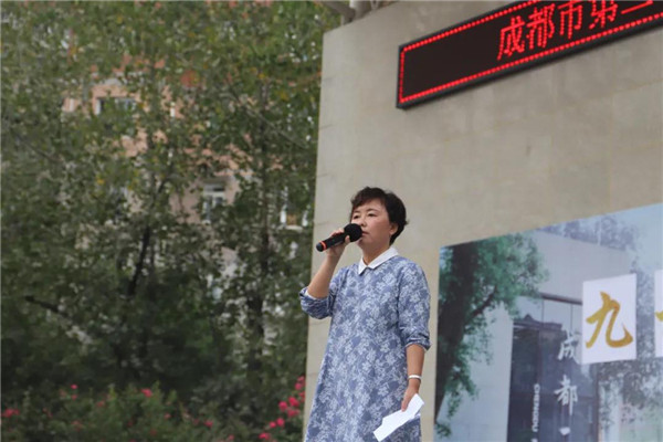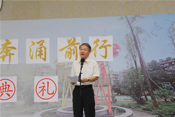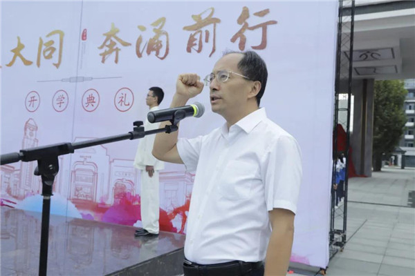 成都二十中校党委书记胡铃冬致辞。胡校长的寄语令全体师生志气昂扬。他激励着大家以更加饱满的热情和更加笃实的行动去实现大同的理想。