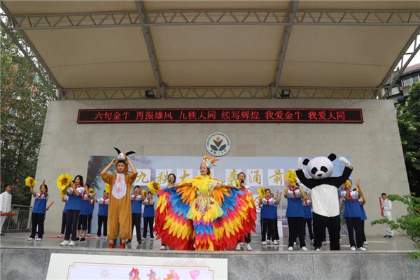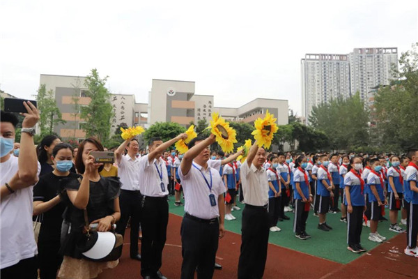 最后,熟悉的旋律《大同学子之歌》响起。二十中学子踏着音乐的步伐,挥动着手中的向日葵,用坚定的步伐,铿锵的话语,表达了他们对成都金牛,对大同校园最诚挚的祝愿,唱出了他们心中最美好的向往!伴随着“六旬金牛,再鼓雄风;九秩大同,续写辉煌;我爱金牛,我爱大同”,成都二十中开学典礼落下帷幕。
