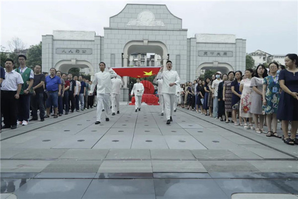 礼毕,李小涛老师带领该校全体师生庄严宣誓。