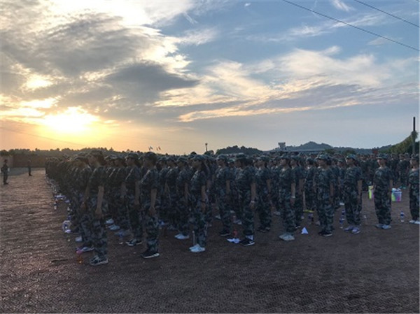 晚上18:40,吃过晚饭后,全体学生齐聚训练场,伴随着夕阳,拉开了晚训的序幕。