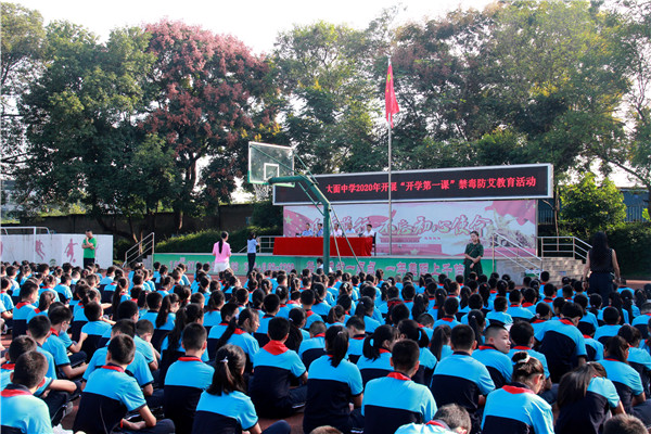 2020年9月7日,成都市龙泉驿区大面街道禁毒办公室干事张强,陪同成都市强制隔离戒毒所教育矫正中心主任李林,干警顾荣莉、杨柳、陈果、罗高明,以及大面派出所民警孙运杰等一行到成都市龙泉驿区大面中学,为全校师生开展“开学第一课”禁毒防艾教育。