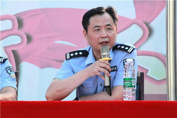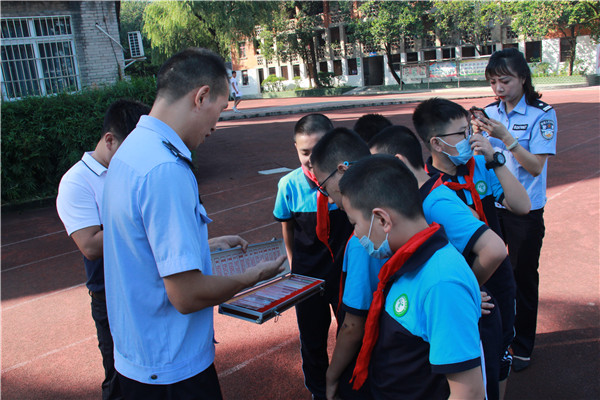 戒毒所干警来到学生中,向同学们展示仿真毒品模型,讲解毒性,让同学们识别毒品,知晓危害。