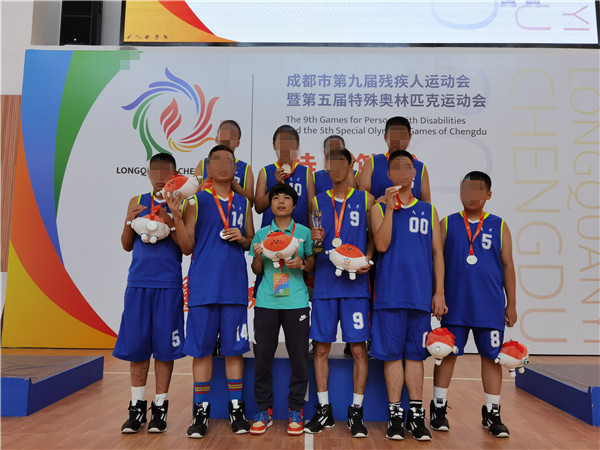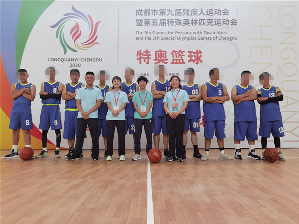 第五届特殊奥林匹克运动会在成都市龙泉驿区火热进行,青羊特奥篮球队10名运动员在成都市青羊区特殊教育学校(以下简称:青羊特校)党支部书记、校长、青羊特奥队领队卞蓉、教练李兵杰及3位工作人员陈丽、肖倩、冯刚的带领下,参加了9月5日至9月7日为期3天的篮球比赛,获得队制比赛第二名、个人能力比赛第一名的好成绩。