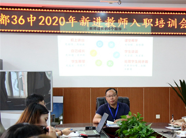 为深入学习贯彻2020年全国教师发展大会会议精神,围绕金牛区建设“全国一流教育强区”发展目标,帮助学校新教师尽快适应新岗位,9月8日下午,成都市第三十六中学(以下简称:36中)在三楼会议室举办了2020年新教师入职培训会。学校党总支书记、校长任俊,分管副校长夏子辉,德育处主任陈林,教科室主任罗家国,办公室副主任刘燕,教科室副主任林彧及学校10名新进教师参加了会议。