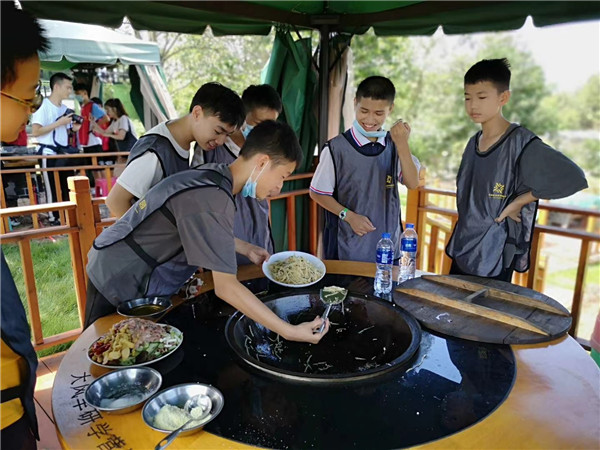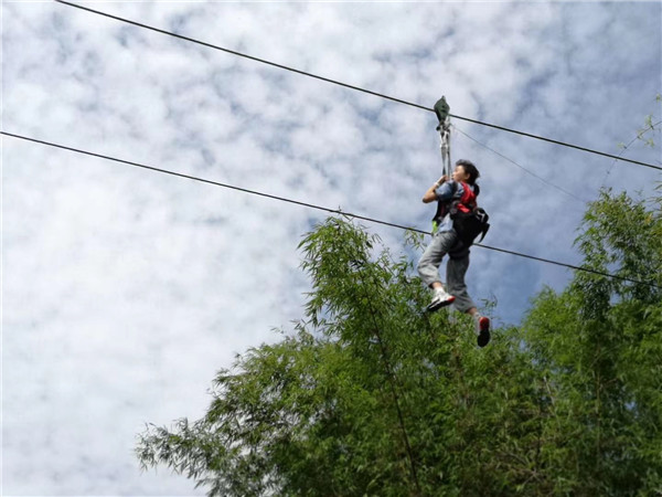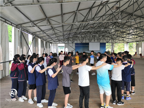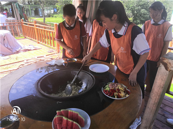 本次活动在成都市大风车未成年人社会实践示范基地展开。学生们首先体验了破冰行动,这些孩子都是来自不同的班级,通过破冰行动让学生们消除了陌生感,增强了团队协作的能力。接下来是高空溜索、攀岩比赛等惊险刺激的活动,特别是攀岩比赛让学生们感受到坚持才会成功的道理,培养了学生坚韧不拔的意志品质。中午是自助午餐,学生自己制作菜品,他们团结协作,生火、炒菜、洗碗,一切都安排得井井有条。最后是萌宠乐园(给动物喂食)和天梯速降,在休闲的下午时光中结束了本次活动。本次活动塑造了未成年人坚韧不拔的意志品质,培育自尊自信、积极向上的阳光心态。