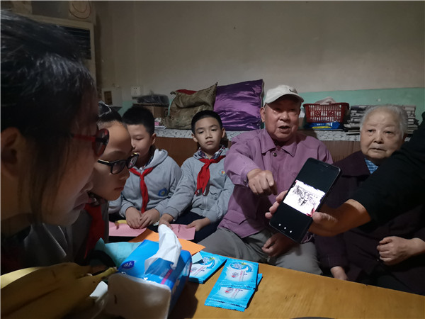 少先队员们带着贺卡、月饼和精心准备的节目,怀着崇高的敬意看望了德高望重的革命前辈。5.1中队的队员们来到曹爷爷、曹奶奶家。曹爷爷和曹奶奶都是参加过抗美援朝的战斗英雄。曹爷爷生动形象的向队员们讲述起他们的战斗经历,大家安静地倾听着曹爷爷的诉说,仿佛走进了那战火纷飞的年代,深深体会到战斗英雄不怕牺牲、大公无私、报效祖国的革命情怀,内心更充满了对浴血奋战的革命前辈的敬佩与感激。怀着崇敬与感激之情,5.1中队的队员们为曹爷爷、曹奶奶表演了精彩的节目。