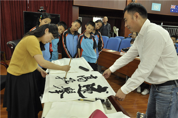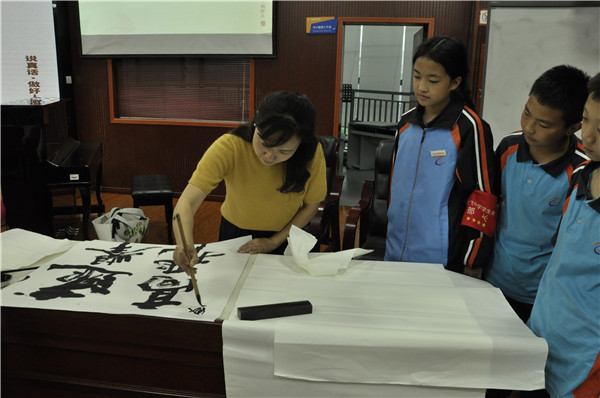 最后,作为成都市书法协会会员的赖校长,现场为学校题上“远举高飞”四个字,为学校60周年校庆留下珍贵的墨宝,对母校寄予了美好的祝愿和期盼。