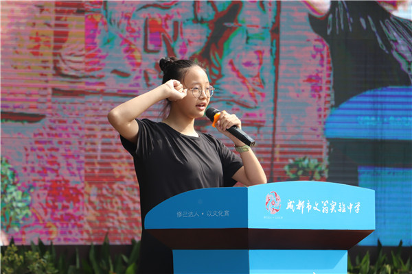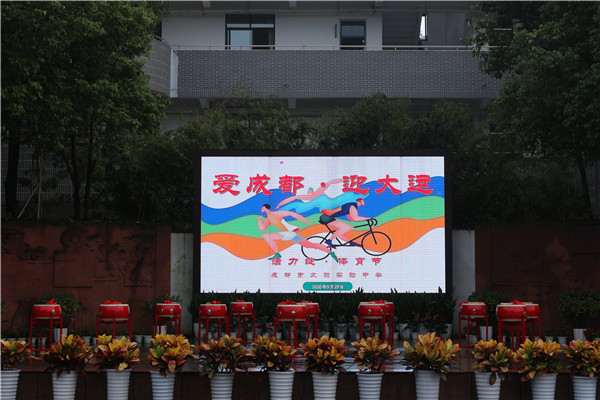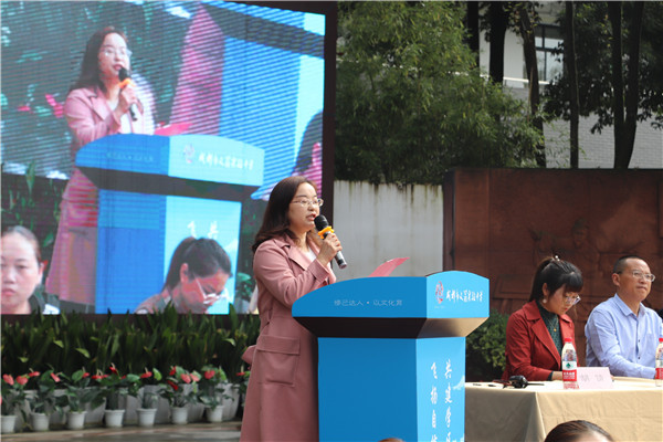 学校副校长胡倩为本次体育节开幕式致词,她指出,学校近几年在成都市、青羊区篮球、足球、排球等各级各类比赛上取得了优异的成绩,此次体育节的举办,既是对成都大运的诠释,也是文中为托举每一个梦想而创造的舞台。