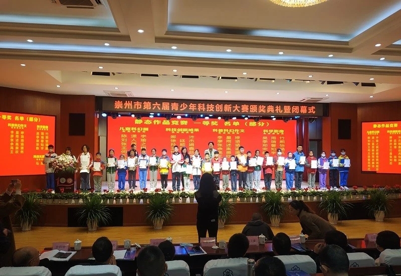 10月20日,由崇州市人民政府主办的崇州市第六届青少年科技创新大赛颁奖典礼暨闭幕式在崇庆中学举行。崇州市人大副主任李文明、崇州市人民政府副市长冯卫康、崇州市政协副主席马灵,以及共青团崇州市委、市教育局、市新经济和科技局、市科协、市文联的领导出席颁奖典礼暨闭幕式。来自崇州市各中小学的校长、分管领导、获奖教师和获奖学生代表近400人参加闭幕式。