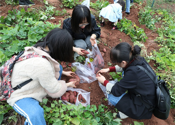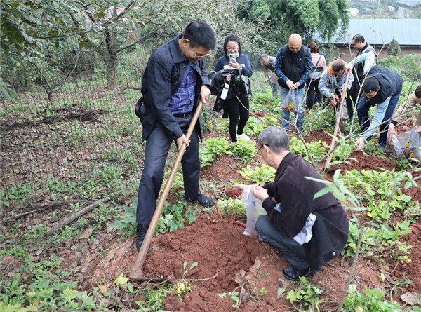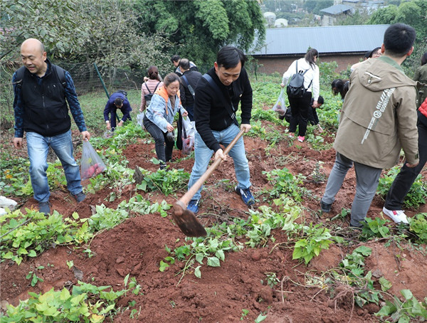 11点,全体乘车前往龙泉山城市森林公园宝仓湾,感受新农村新气象。亲身实地体验挖红薯劳作的艰辛与不易,感受劳动的快乐和丰收的喜悦。