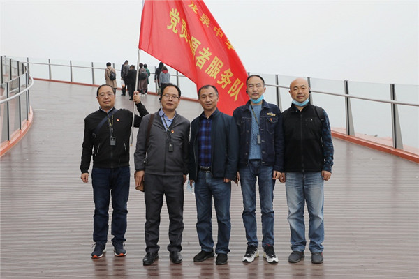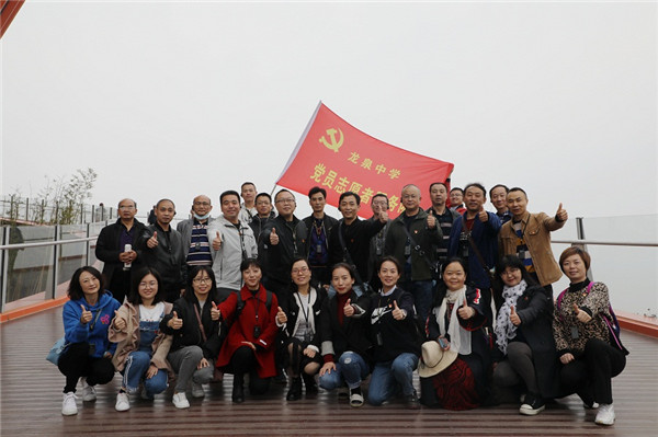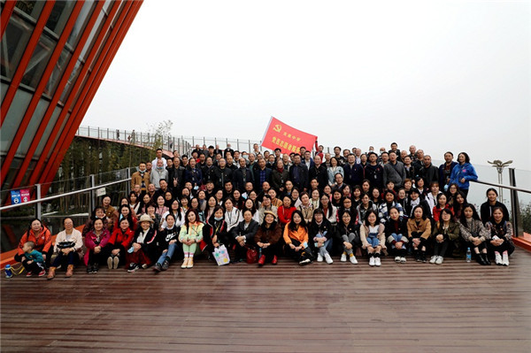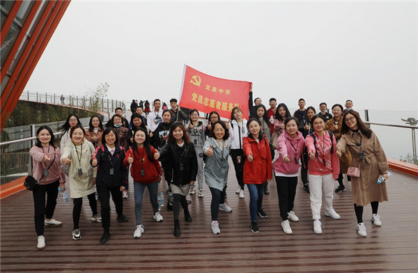 10月25日早上7:30,全体党员戴好口罩、佩戴党徽,按时在学校正大门口集合,以支部为单位乘车前往“城市之眼”丹景台。