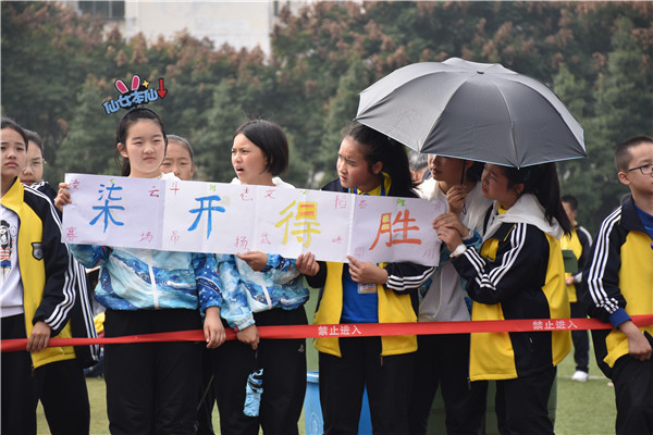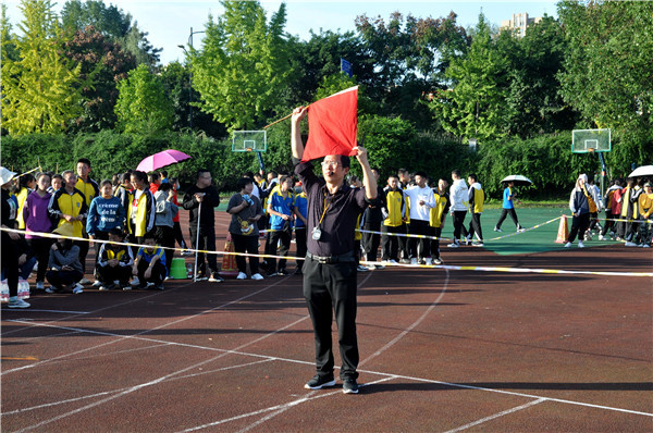 在庄严的升旗仪式结束后,副校长杨立军为运动会致开幕词,他希望运动员们发扬“友谊第一、比赛第二”的风格,敢于拼搏、勇于进取、赛出风格、赛出水平,为班级争光添彩;全体裁判员、工作人员要本着“公平、公正、公开”的态度,为比赛创造良好的环境。随后裁判员代表陈世银、运动员代表罗雯宇同学分别宣誓后,艾鹏程校长宣布运动会正式开始。