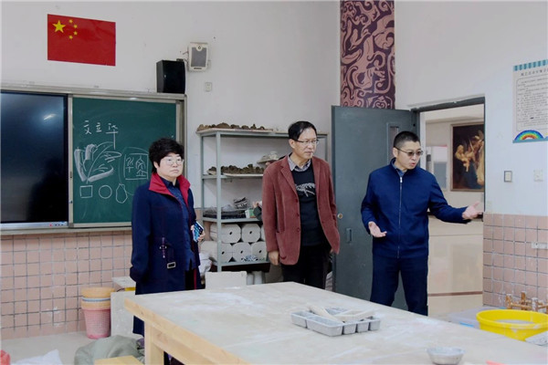 刘烨老师指出,学校要以打造“陶艺”“扎染”“剪纸”“编织”等传统文化课程为契机;拓展教学内容,丰富学生校园生活,培养孩子们的家国情怀;从而引导学生树立正确的人生观、价值观、世界观,提高学生综合素养。