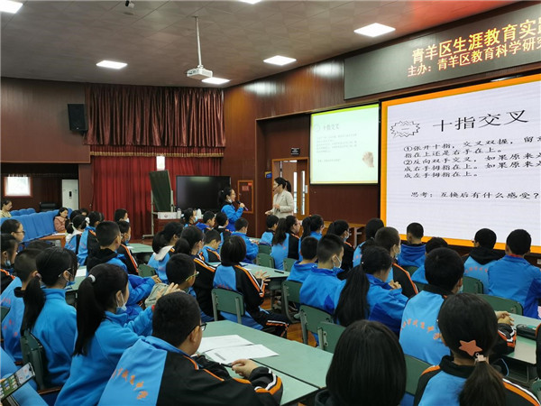 随后,成飞中学蒋美娥老师展示了一节精彩的生涯通识课《小支点撬起大梦想——微习惯养成计》。蒋美娥老师以趣味十足的暖身活动引入习惯的养成,引导学生了解习惯养成的生理学基础。课堂中,蒋美娥老师指导同学们将“想培养的习惯”一一列出,然后化整为零,转化为“每日微习惯”。本节课从生涯执行的角度出发,旨在引导学生建立良好的行为习惯,高效适应初中生活,实现自己的目标。