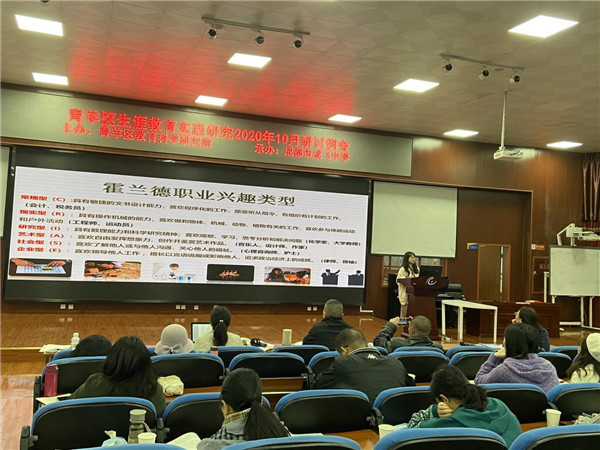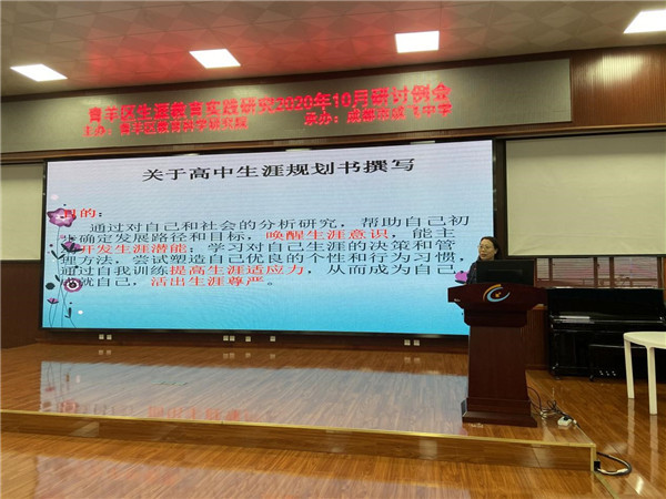 最后,青羊区教科院科研室刘静老师详细说明了《高中生生涯规划书撰写指导》,生涯规划书的撰写能帮助学生初步确定发展路径和目标,唤醒生涯意识。刘静老师总结了本次研讨会,并提出了相关活动开展的计划与建议。