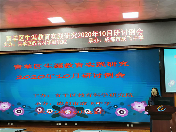 10月28日,“青羊区生涯教育实践研究会”10月研讨例会在成都市成飞中学顺利举办。此次研讨会侧重中学生涯教育实践研究、搭建交流学习平台。成飞中学校长余泓、青羊区生涯教研员刘静老师、青羊区心理教研员黄记新、生涯项目试验学校业务分管及生涯项目中心组成员出席本次会议。活动由刘静老师主持。