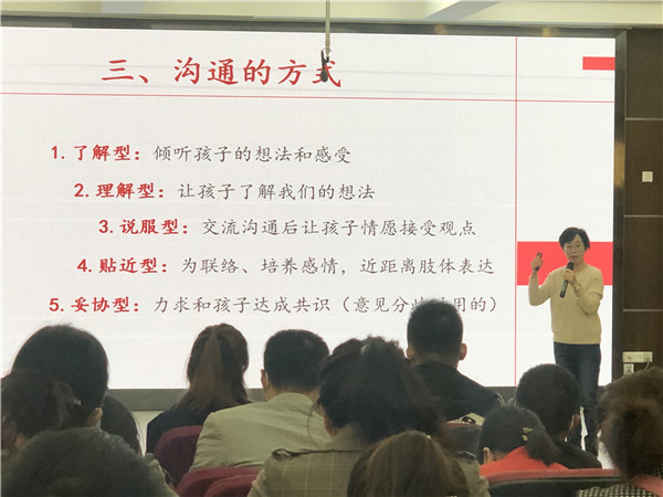 罗老师在讲座中围绕亲子沟通的艺术和技巧,与家长们进行了分享。以多年实践经验,结合对家庭教育案例的深刻解读,引导家长们厘清沟通的实质、沟通的方式以及沟通的技巧。