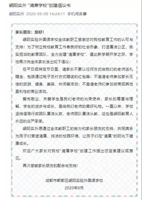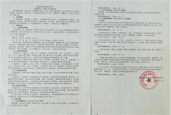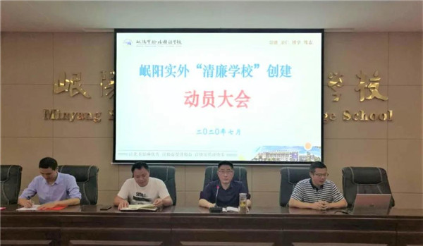 2020年7月,根据相关要求,区教育局号召全区各学校全面创建清廉学校。成都市郫都区岷阳实验外国语学校(以下简称:岷阳实外)积极响应、全面动员,迅速召开各级层面的动员会部署相关工作,同时,成立“清廉学校”创建办公室,全面领导创建工作的开展,各项举措有条不紊的推进和落实,在校园内形成了清廉之风处处飘、清廉之气处处散的廉洁文化景象,为助推和实现办人民满意教育贡献岷阳力量。