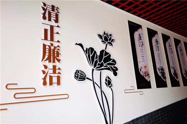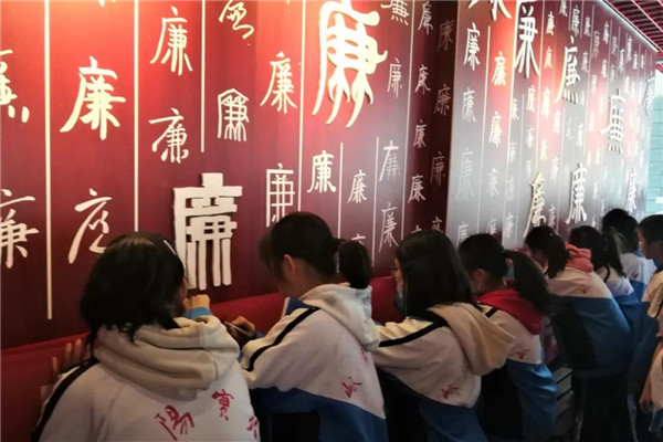 学校把第一教学楼设置为“清廉文化”阵地,将师生的“清廉”书写与创作作品在大厅及楼道进行装饰、布置,以点带面,形成了学校廉洁文化阵地的纵贯线,扩大教育对象和覆盖面,增强廉政文化的亲和力、渗透力和感染力,使清廉风气渗透到校园的方方面面,让清廉思想浸润师生的心田,实现“内化于心,外化于行”。