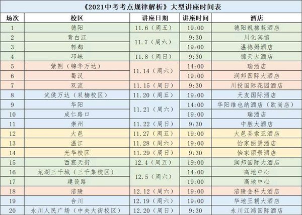 据四川教育在线记者了解,星海教育“2021中考考点规律解析”主题宣讲会仍在进行中,20场巡回讲座,时间地点任你挑选,欢迎同学们和家长们走进宣讲会现场,与专家面对面沟通!(杨庆虹)