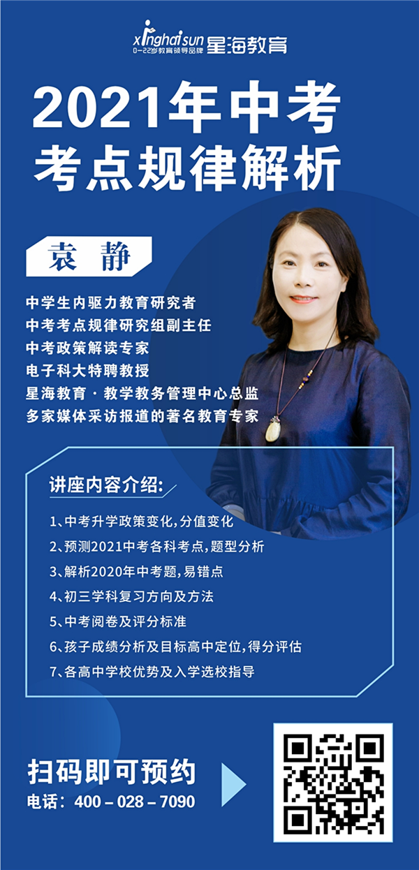 2020年11月7日,星海教育“2021中考考点规律解析”主题宣讲会走进郫都区,中学生内驱力教育研究第一人、中考考点规律研究组副主任、中考政策解读专家、电子科大特聘教授、星海教育教学总监袁静,为来自郫都区周边学校的初三毕业班学生和家长带来了一场精彩的主题讲座。