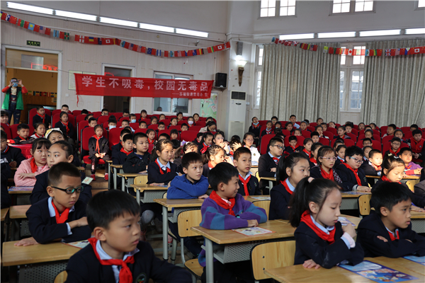 “当有人把香烟递到你的面前应怎么做?”“有陌生人逼迫你吸毒应拨打哪些电话?”为了让同学们更好的消化理解,程警官以问答的形式和孩子们进行互动,同学们争先恐后地高高举起手来,生怕错过了每一次答题的机会。