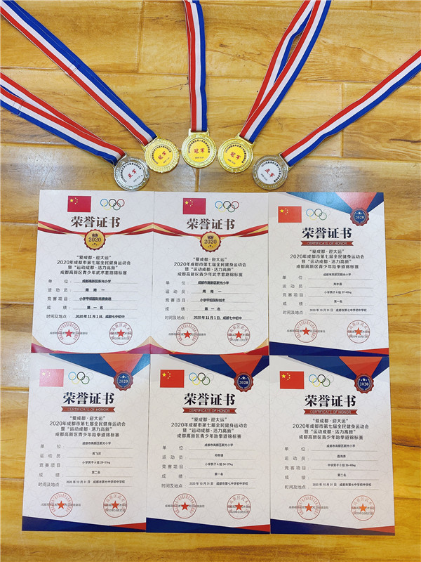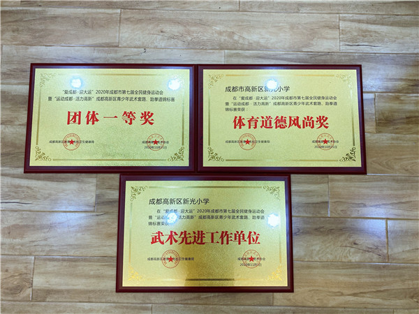 成都七中初中学校5名学生在领队何永军主任,教练员魏琦老师、唐双帆老师的带领下参加了本次比赛,并获得了团体总分一等奖、体育道德风尚奖、武术先进工作单位的荣誉称号。