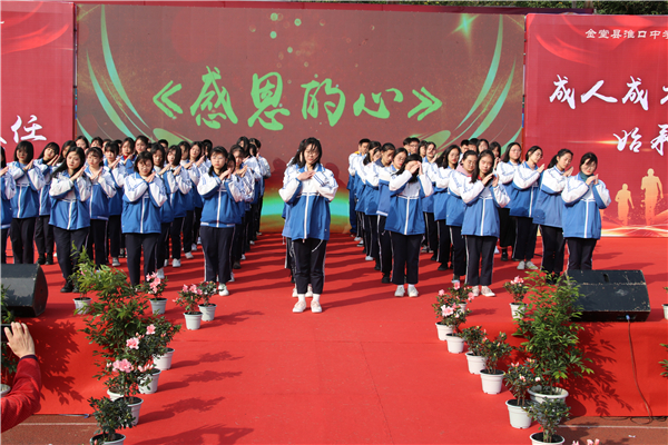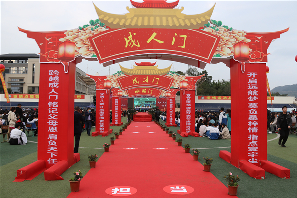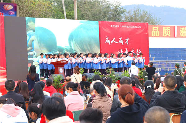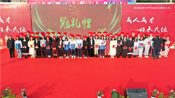 2020年11月18日上午,金堂县淮口中学为高2021届学子举行成人礼仪式。高2021届全体师生及家长准时参加。