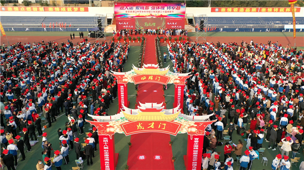 紧接着,家长和老师紧紧牵起孩子的手,在他们的引领和陪伴下,学子们坚定步入成人门,接过《中华人民共和国宪法》,正式进入到成人的行列,去开启未来彩虹般的美丽人生。在成才路上,学子们将时刻铭记勤奋与付出。在必胜门下,学子们思考取得进步的原因,昂首向前,迈开大步,向着未来勇敢出发。