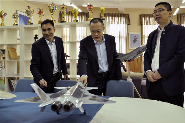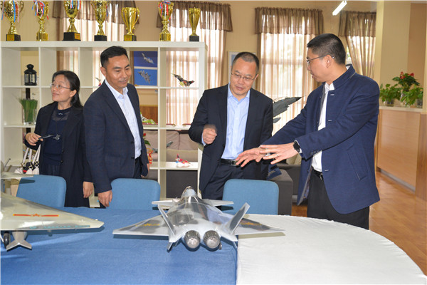 在余泓校长的陪同下,马涛副院长一行参观了学校校园航空科技教育特色文化建设和航空科技教育特色展厅,随后听取了余泓校长关于学校航空科技教育特色高中的创建理念、创建路径、创建措施、创建成绩等方面的全面汇报。