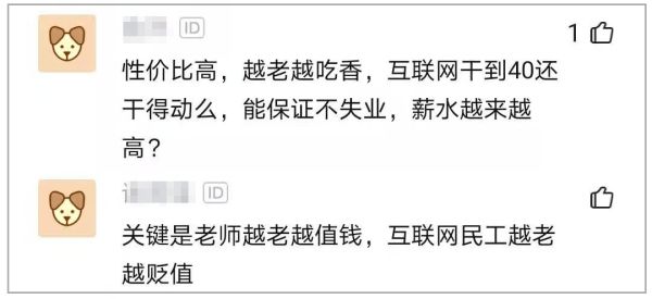 当然,大家的评论中肯定少不了“ 中年危机”:人家越来越高,程序员越大工作越难找;程序员25年失业级别;你40早失业了;别酸了!等你到40岁时能有个工作就不错了!