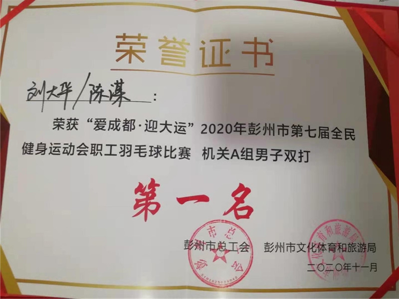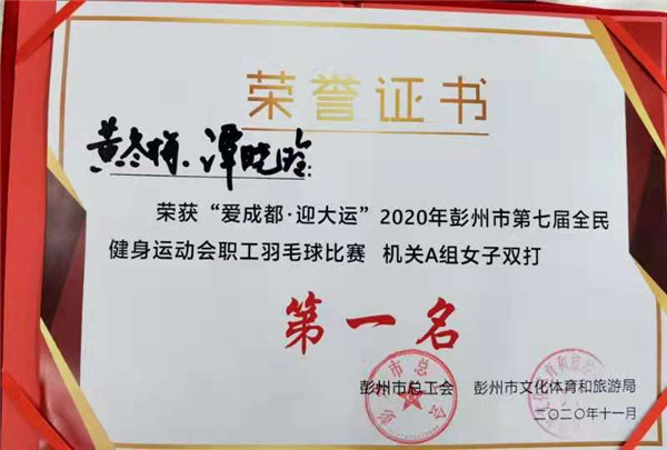 为推动彭州市羽毛球运动的开展,2020年11月21日、22日,在彭州市总工会、彭州市文化体育和旅游局的组织下,“爱成都·迎大运”2020年彭州市第七届全民健身运动会职工羽毛球比赛在彭州市瑞翎羽毛球馆顺利举行。四川省彭州中学积极响应号召,组织了由工会主席任领队的职工羽毛球队,参加了男单、男双、女单、女双和混双等项目的比赛。