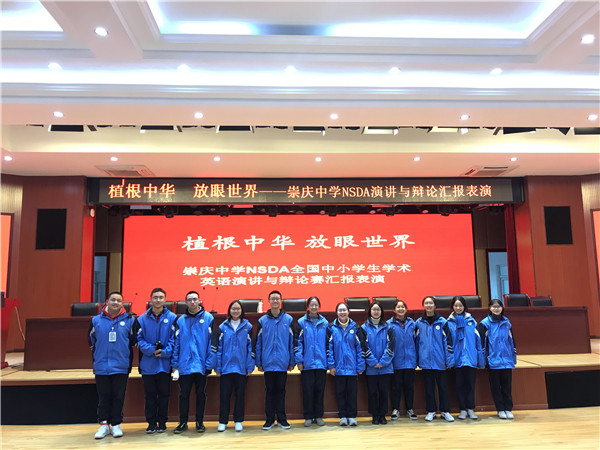 在NSDA全国中小学生学术英语演讲与辩论比赛(四川赛区)的决赛中,崇庆中学参赛选手们凭借良好的综合素质、自信优雅的台风,给现场评委们留下深刻印象,高二九班朱雨桐同学和高二二班廖小溶同学分别荣获四川赛区高中组第五名和第十名的好成绩。