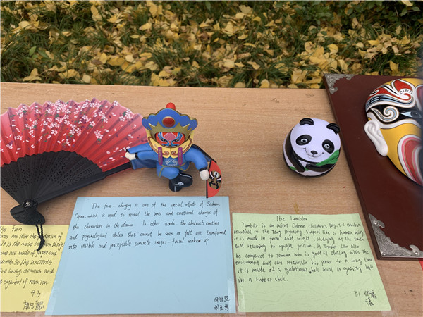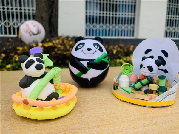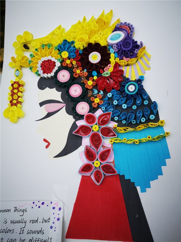 学生作品有中国剪纸、熊猫系列、中国传统戏剧脸谱以及生活中的各种传统文化手工艺品等。