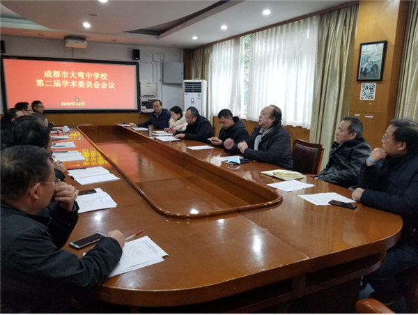 12月15日,成都市大弯中学第二届学术委员会在学校二会议室召开了首次会议。会议由大弯中学学术委员会会长余卫东主持,参会人员有大弯中学赵泽高校长,分管教学副校长何晓虹,教学课程中心副主任余永聪,以及大弯中学第二届学术委员会全体成员。