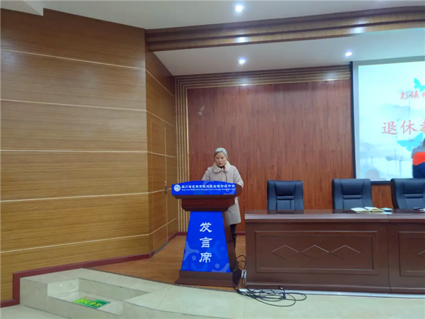 会议由该校校长周东生主持。教务处主任冯艳和生地组组长李向玉老师分别向周宏光和伍茂菊老师献花。退休教师代表伍茂菊老师作了讲话。