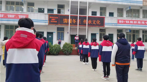 早上9点,学校德育处组织全体师生开展“情暖冬至、传承文化”主题升旗仪式,宣传冬至节的历史由来、天气特征等,让同学们对冬至节有了基本的认识。