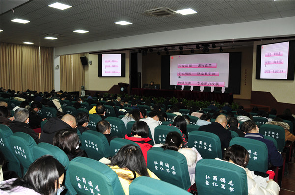 赵广宇老师从国家层面的课程改革、学校层面的课堂教学改革、教师层面的专业能力发展等方面,就如何拥有“新的学生观”“新的教师观”“新的教材观”“新的教学观”及教学理念的革新、教学行为的创新,向与会老师进行了培训。