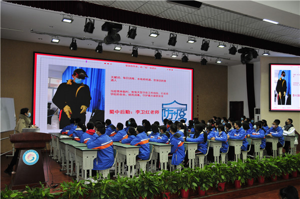 12月24日,崇州市蜀城中学第16届学术年会再迎一场重头戏,徐丽君、胡丽娟两位老师以“新冠疫情下的爱国主义教育”为主题,分别针对高二和高一年级实际和学生的年龄特点,展示了精心准备、各具特色的班会课。回忆抗疫英雄故事,分享普通人的抗疫经历,现场气氛感人至深。该校校长周玉林、党总支专职副书记吴红雨、副校长袁术珍、教科室主任张代琪、全体班主任及40岁以下教师在学术报告厅现场观摩了此次展示活动。
