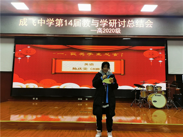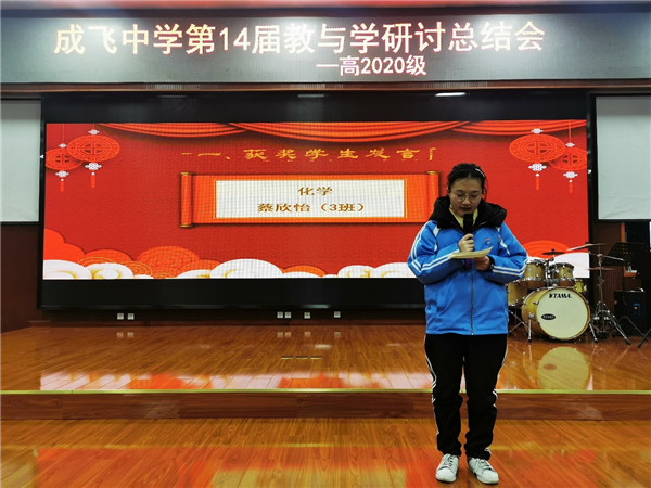 接着,在化学竞赛中荣获一等奖的蔡欣怡同学代表获奖学生发言,她表示学好化学要做到认真听讲,做好笔记;及时回顾,加深印象;认真检查,不出纰漏。同时也谈到要重视学习效率、重视纠正错题、践行不懂就问,不要畏难,要有信心。
