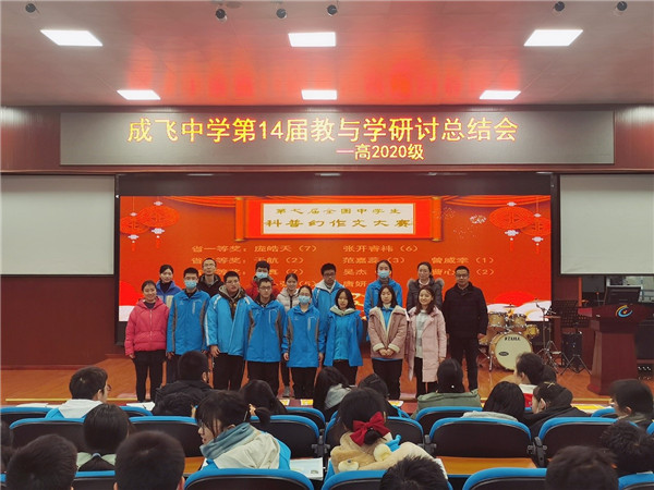 近期,成飞中学第十四届教与学研讨活动正如火如荼地进行着。12月25日下午,高2020级学科竞赛表彰大会顺利举行,对近期在第七届全国中学生科普科幻作文大赛、数学运算竞赛、青羊区英语书法比赛、化学竞赛中取得优异成绩的同学进行表彰和鼓励。学校高度重视此次表彰大会,教务处冯燕玲主任、年级组长罗庆伦老师、高一全体班主任及语、数、外、化学四科备课组长及本组老师参与了此次大会。大会由年级主任岳凯老师主持。