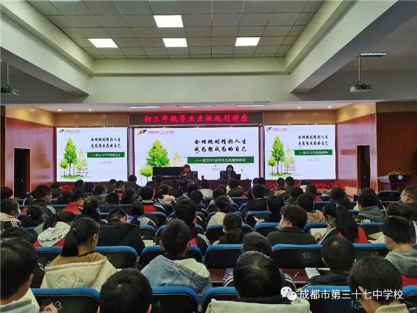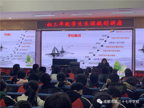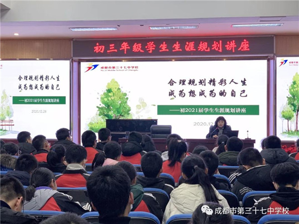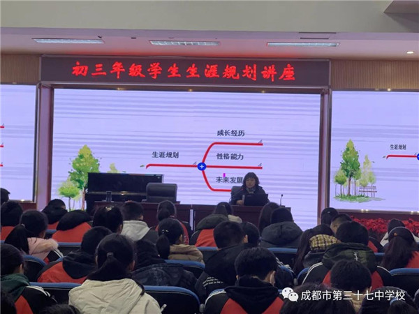 为了帮助学生做好初三规划,明确学习方向,坚定学习信念,12月28日下午,成都市第三十七中学校(以下简称:成都三十七中)在学术厅举行了初三年级生涯规划讲座。